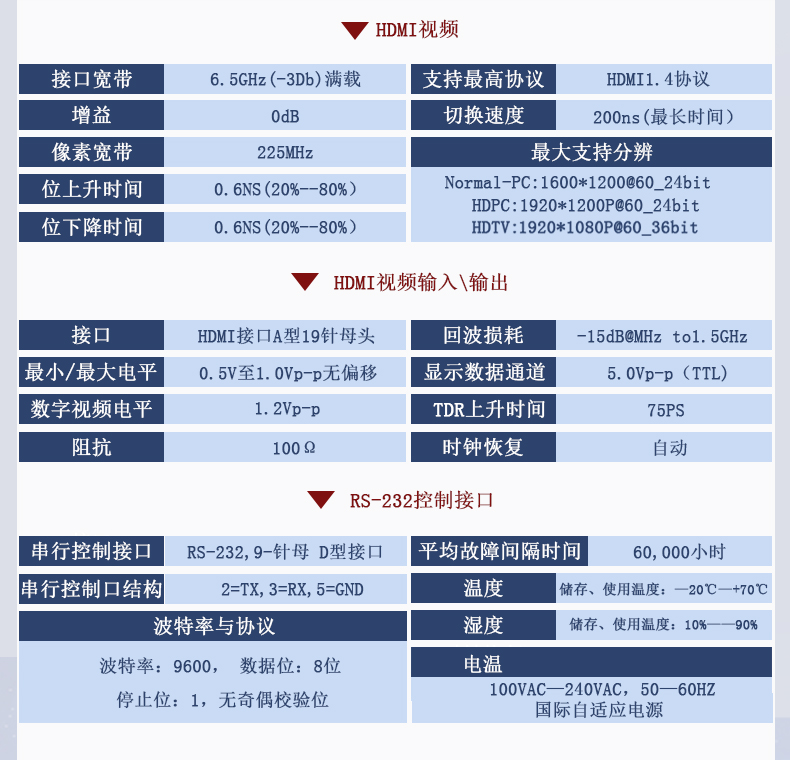 ?支持RS-232、紅外(選配)、網(wǎng)口(選配)控制信號切換功能;